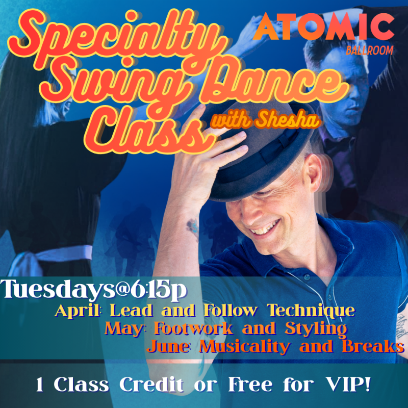 Shesha has been dancing and teaching Lindy hop and related swing dances for 30 years and is co-owner of ATOMIC Ballroom. These exact classes and concepts were used to train many of the advanced dancers and teachers at ATOMIC Ballroom over the years. Be sure to join the fun!