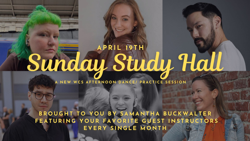 Sunday Study Hall is a choose-your-own-adventure West Coast Swing afternoon; part guided practice, part social tea dance, all in a relaxed, supportive environment. Whether you want to social dance with friends, work intentionally on your dancing, or get feedback from instructors, you get to decide how you use the time. This is not a traditional class and not a rigid structure. Come as you are, dance how you want, and engage at the level that feels right for you.