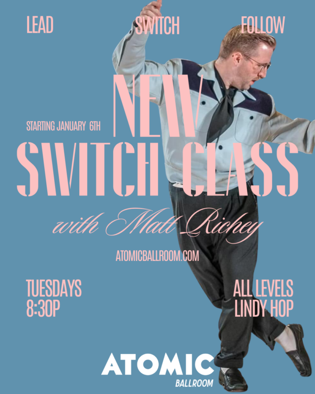 Learn to lead and follow—and switch between them—so you can feel comfortable dancing with anyone on the floor. ATOMIC Ballroom’s Switch Class for Swing Dances is an open-level weekly class designed to help you build real role versatility across swing styles (think Lindy Hop, Balboa, Collegiate Shag, and more). If you’ve ever wanted more freedom in partner dancing, more options socially, or simply a deeper understanding of how swing works, this class is your new favorite Tuesday night.
