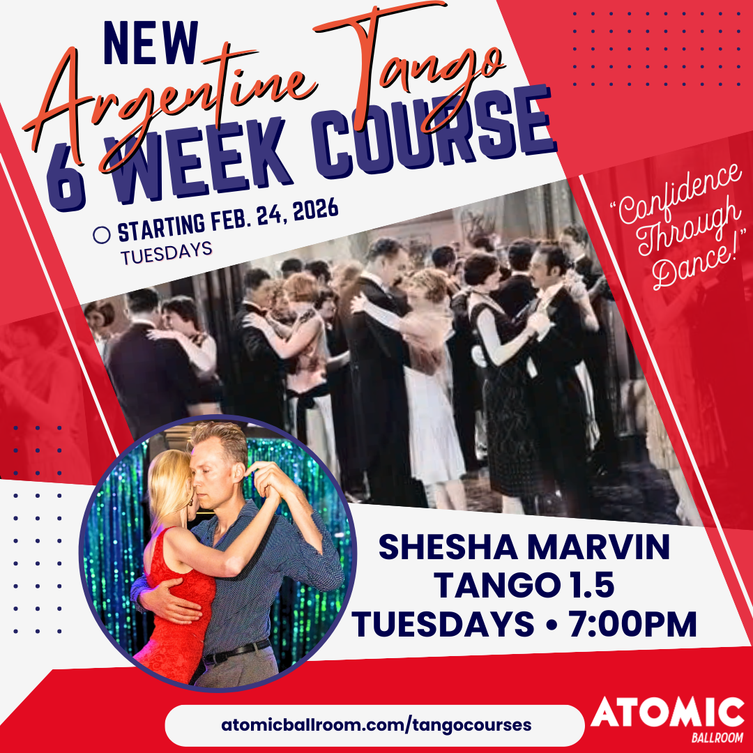 Welcome to ATOMIC Ballroom’s Argentine Tango Courses—where connection, musicality, and that unmistakable tango elegance come to life in a way that feels exciting (not intimidating). Our 6-week progressive tango series gives you a clear path from beginner to more advanced technique, so you can build real confidence week by week with consistent practice, great instructors, and a supportive room of dancers who are learning right alongside you. No partner is needed, and space is limited since these are structured courses (not drop-ins)—so check the calendar and sign up now to lock in your spot and keep your tango journey moving.